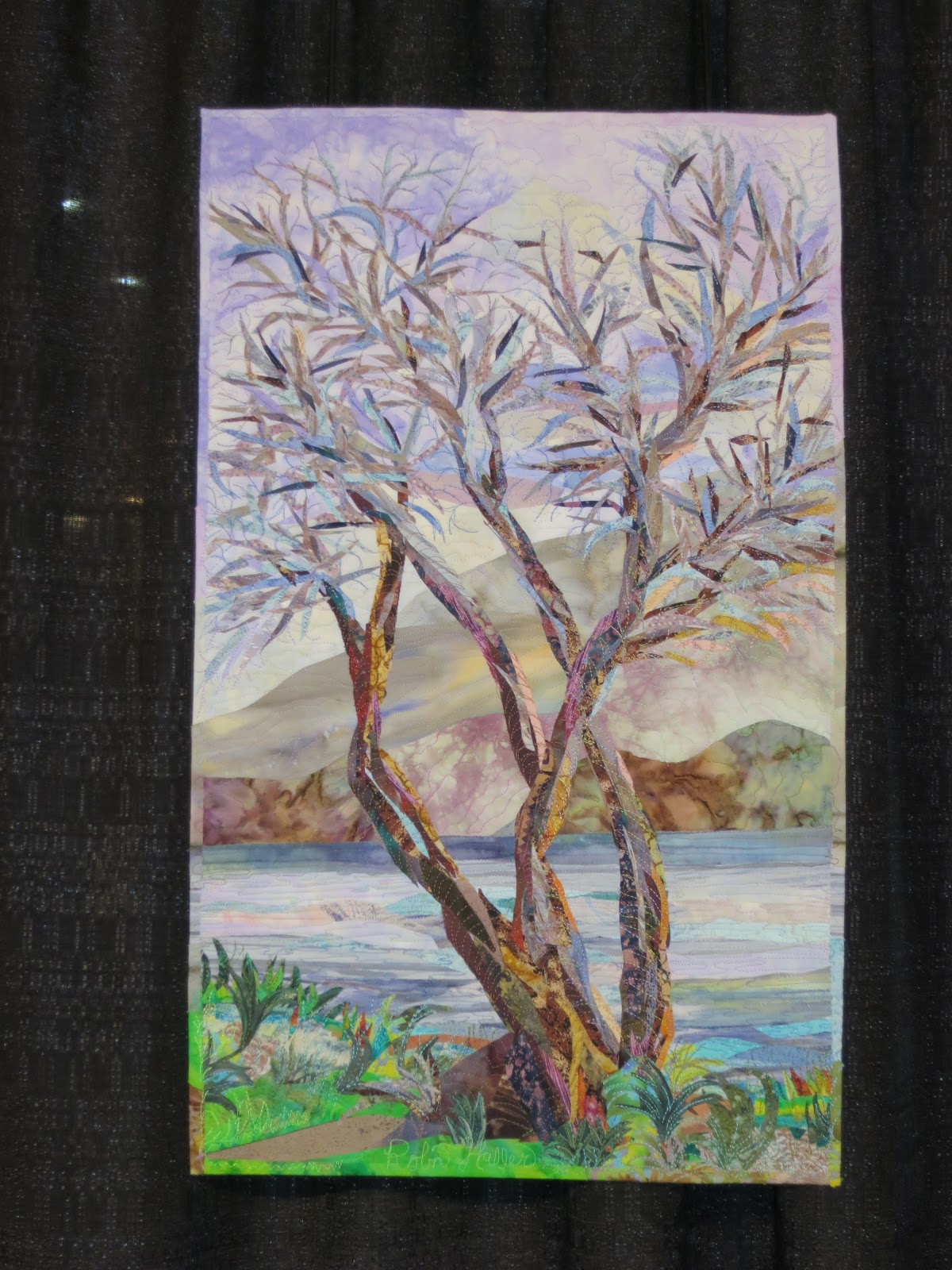 This quilt was one of the awards that really pleased me at the winners circle. It’s not a big quilt and it’s in a category with a lot of far larger pieces but it holds it’s own very well. The photograph doesn’t capture the amazing glow this quilt has. The fabrics have been chosen to capture the light hitting this tree. If I could take a show quilt home with me it would probably be this one, because not only do I love it but it’s small enough I could hang it too. ‘The Leprechaun’s Tree’ by Robin M. Haller.