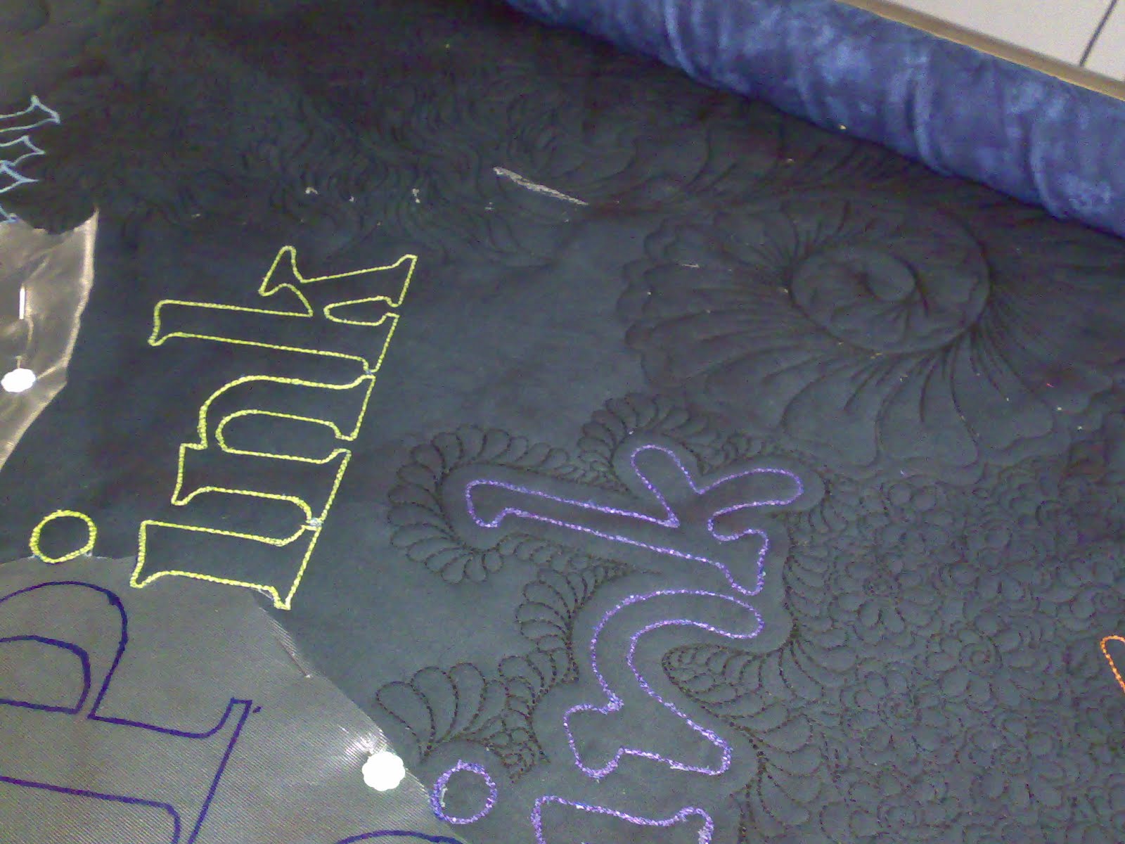 As promised a couple more pictures of the quilt on the frame. This is my entry for the charity category at the National Quilt Championships. I can't say the theme is my thing, "In the Pink" and I really don't like pink, but it's for charity and it's at a show I love. I came up with a idea that I have named "No effing p**k". There won't be any pink on the quilt at all. In fact it will mostly be black, but that isn't a surprise.