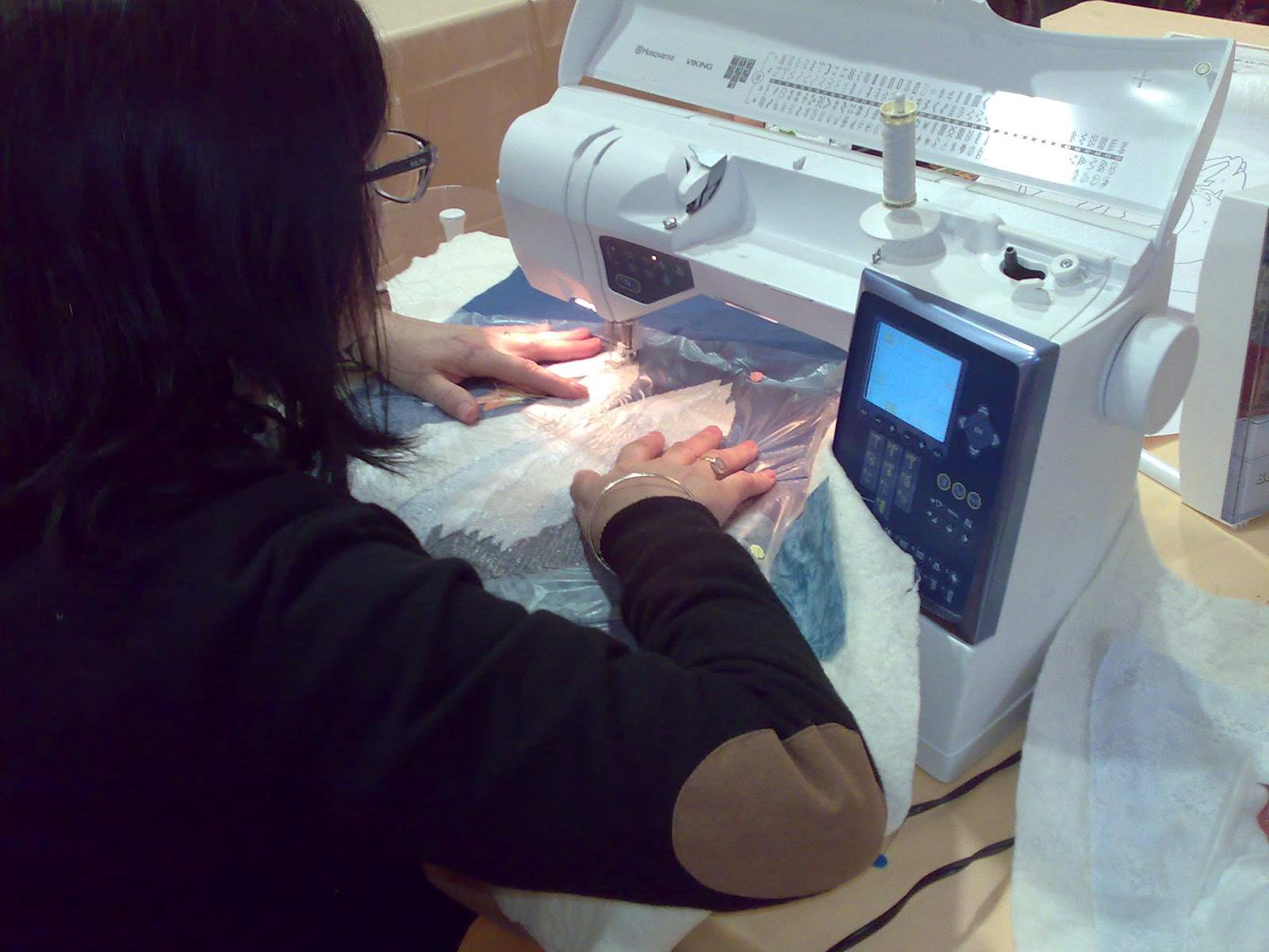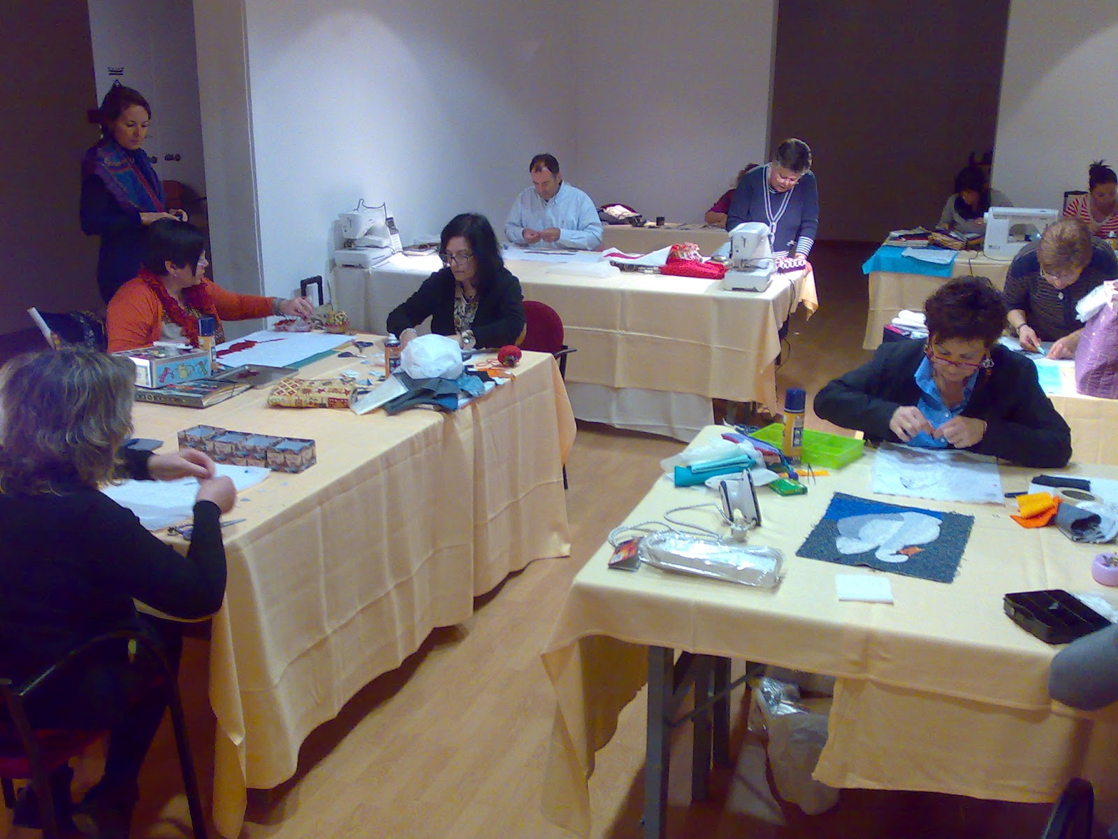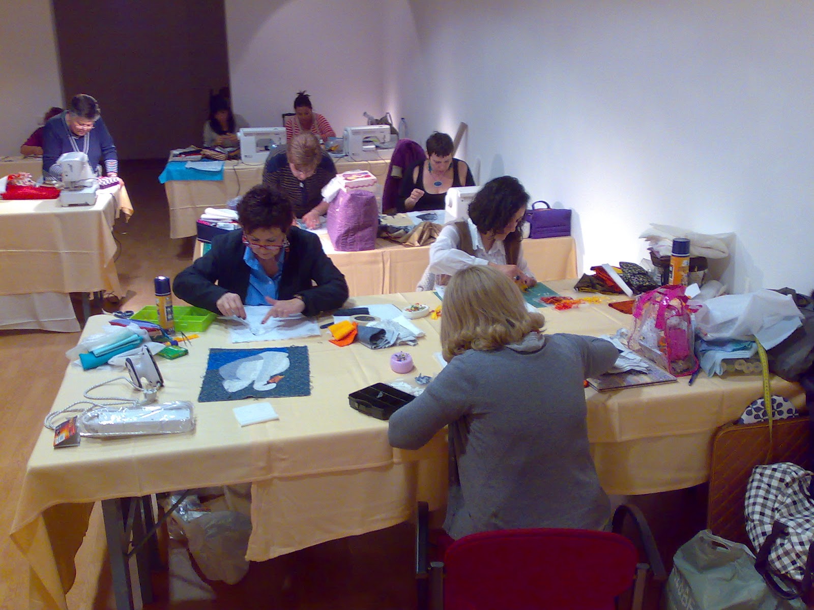 This is the first of the two workshops I taught, art quilts by numbers. This is one of my longest running classes and still one of the most popular. However teaching in Spain meant working with a translator, which I have never done before. So this was just like being a new tutor again and this time I couldn’t hear when my students were having a problem.