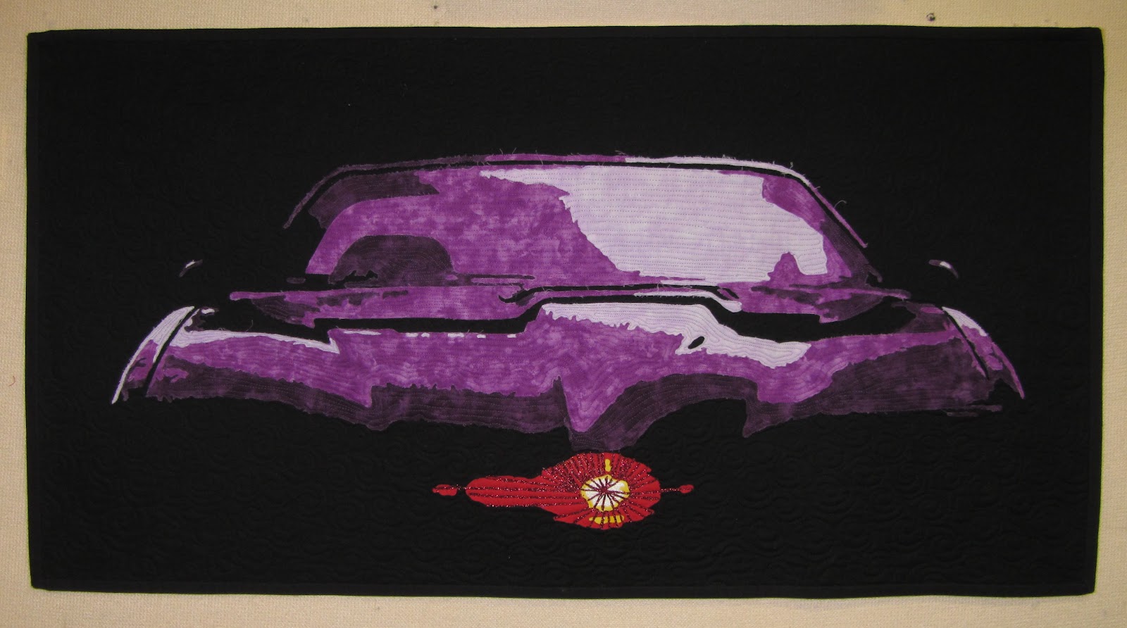 OK, you’re back, lets carry on our trip around the show. Our first quilt today is another that I hadn’t intended to show, but it filled a tricky space and I like it so, here it is. I think more than anything this one shows my age, it’s K.I.T.T. from Knight Rider. I was never much bothered by the people in the series but I fell for the car in a big way. In fact the ring tone on my phone has been the theme tune from the show since it has been possible to set them. Ah if only you could fit the whole of my talk into a 1981 Transam.