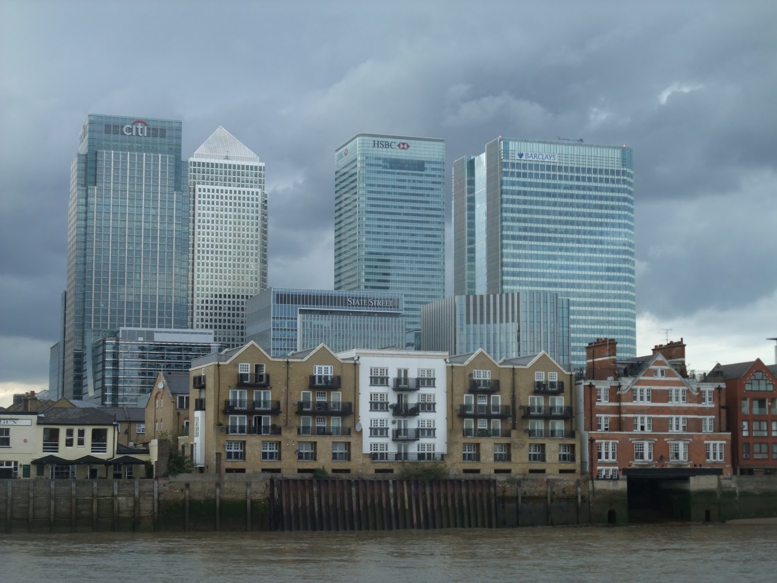 This group of buildings has changed a lot in the time I have been living in London. They are at Canary Wharf in the West India docks. When I first moved to London only one of the four tall buildings existed. One Canada Square is the tallest of the group (the pointy one) and was the first. For several years the working light on it’s roof was my beacon to get me home.