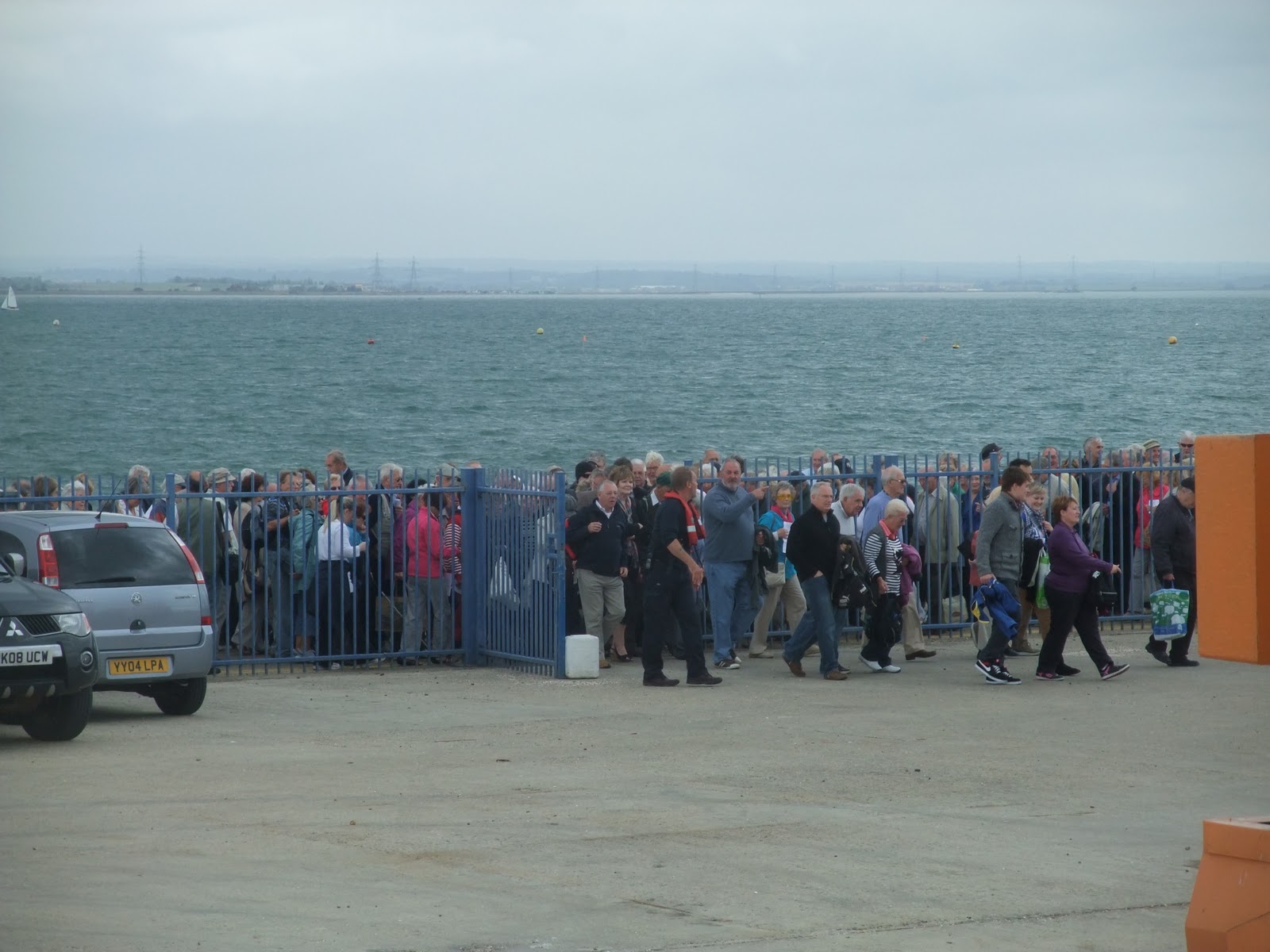 The next stop on our trip was Whitstable. This is somewhere we were both very familiar with from university and we had lived in the area for a few years after graduation. However we had never approached it from the sea. I hadn’t expected the harbour to look so enclosed, it doesn’t from the land side. It also seemed a lot smaller than it had. I have seen several ships being loaded with gravel, and they looked quite large. The Waverley on the other hand looks quite small and seemed to take up a lot of room in the harbour. Given how small the Waverley looks the queue on the dock was quite a surprise. She can actually carry 860 passengers and on Monday was just 6 short of a full load. It does make it quite hard to move around so I was very pleased we had taken the time to look at the engines while there were less people on board. As soon as we left Whistable we headed down to the dining room, thinking that the new passengers would look around as we had done. Sadly we weren’t that lucky and had quite a queue for lunch (which is actually a very good thing for the Waverley she is run as a charity and all the profits keep her sailing). The food was good too, although it was the strangest haddock I’ve had it was tasty.