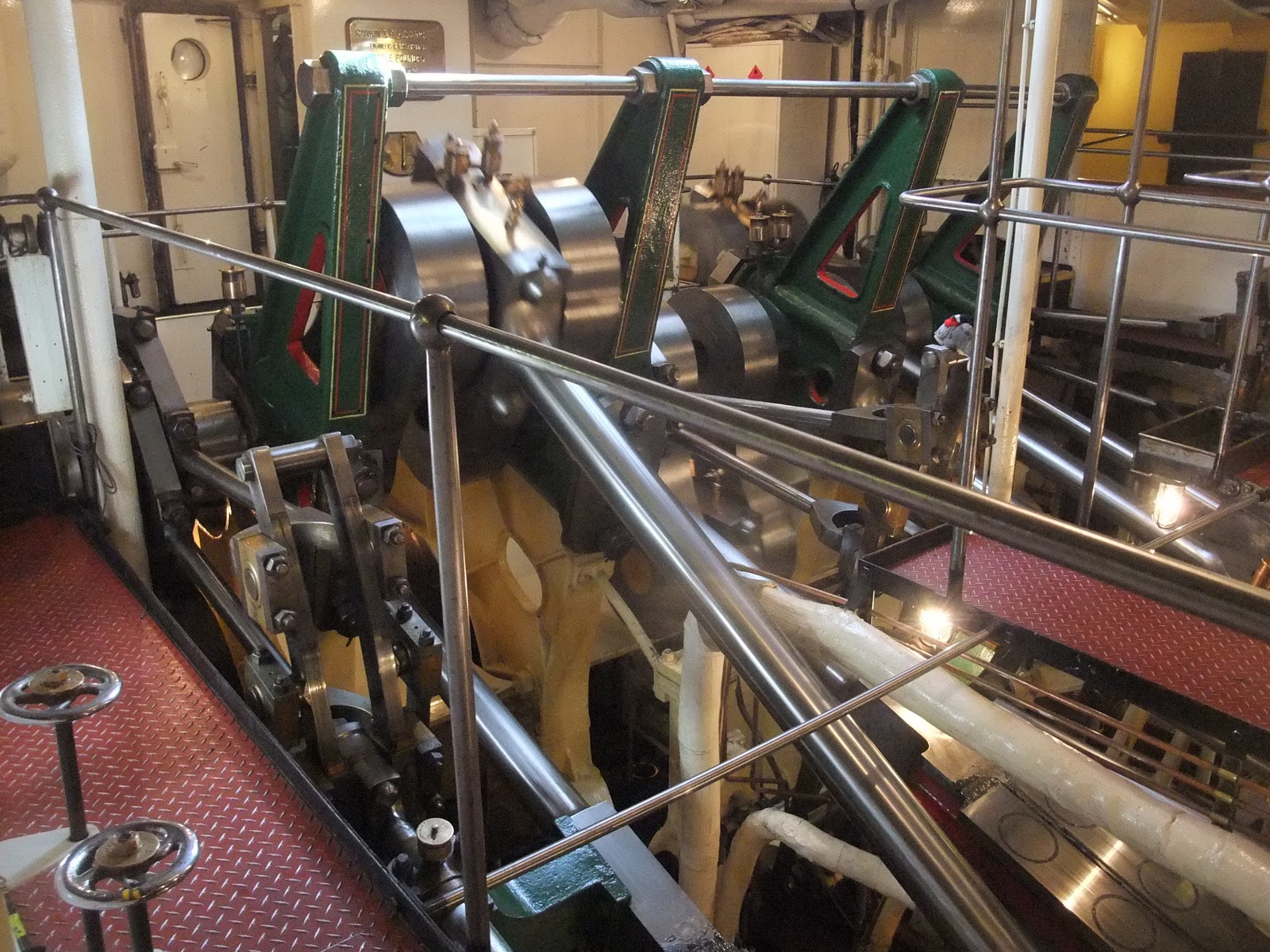 When you are next to the engine you can look out of the portholes and see the paddles moving. It makes it clear why she isn’t the most manoeuvrable vessel in the world. When her paddles are going they are both moving together. Great for propulsion but it would help her turn if they could be slowed independently. They do give her great acceleration though and when she leaves a dock she does it very very quickly.
