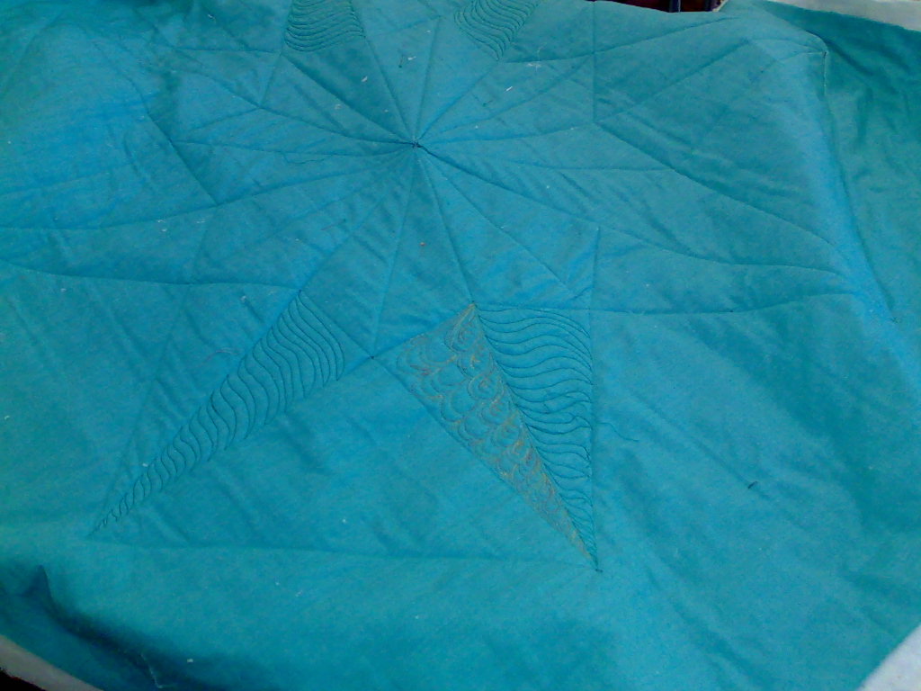 Yesterdays workshop was wholecloths based on traditional blocks.. This is a good way to get people to start applying thier machine quilting skills hopefully without being too intimidating. As you can see pretty much any method of getting thread onto fabric works. We had bobbin quilting, decoratve machine stitches, plain machine stitches and free motion quilting. Some of the ladies even got on to their second wholecloth during the class! Otheres went with bigger and more ornate designs, learnig to draft their own compasses and other blocks. For me it was very exciting watching these quilts come to life. I'm guessing I wasn't the only one having fan as no one wanted to stop for lunch. Eventually we did have to pause and just as well , lunch here is great. Thank you all so much. I've loved sharing my machine quilting tips with you and I can't wait to come back for the insane wholecloth class and the large one ![]()