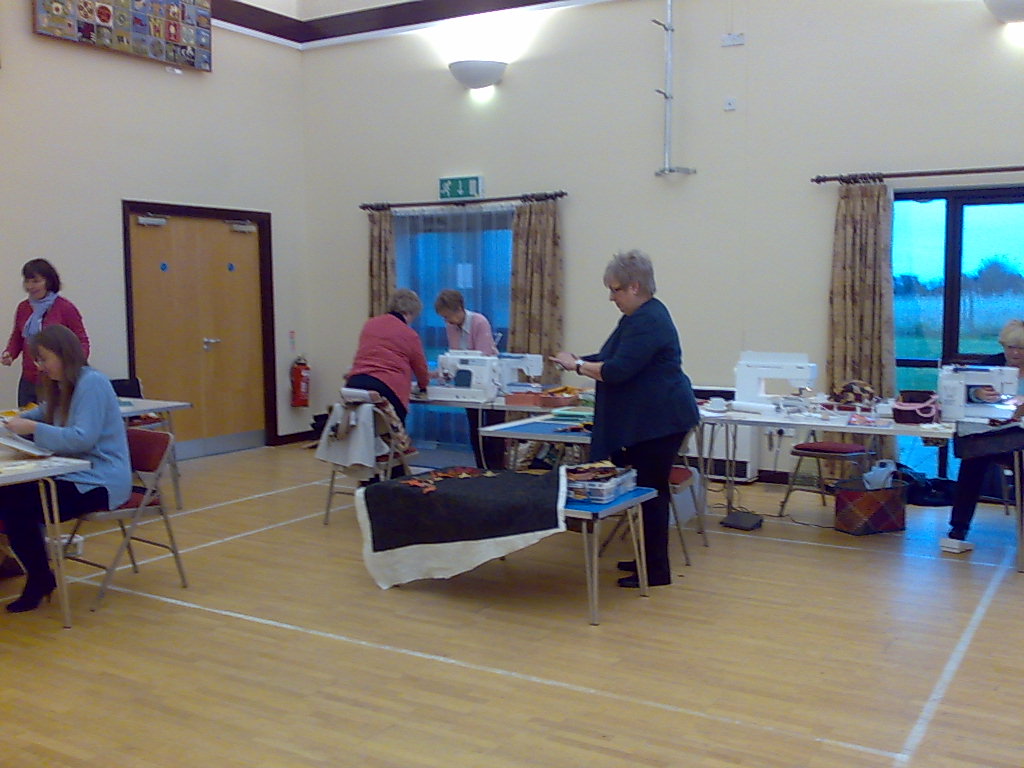I like to be early I get flustered when I am tight on time, but very quickly I realised I wasn’t the only one having one of those days. People kept heading back out of the hall looking for things. Legs, feet, leads, leaves and whole sewing kits had gone walk about. Very strange. On the birght side the kitchen was fully functional and tea, coffee, hot chocolate! and cake were very quickly suppled.