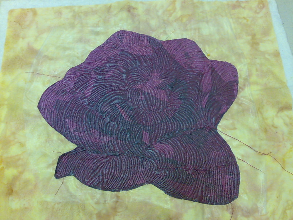 I managed to catch pictures of several of my students work on Saturday, and I just had to share. I was teaching Art Quilts by Numbers at Patchwork Corner, to one of my most geographically diverse groups yet. It was fun having some new faces and watching them explore the techniques, shop, and cakes. The pictures are all of unfinished pieces, but you can see they were all coming along well. One of the roses is showing the quilting really well. Once it has been rinsed the quilting will sink in so it's nice to be able to appreciate the work that has been done. As you may have gathered I've been busy recently but not on anything really blogable. I am trying to do some work on my projects, but I have a lot of customer work I need to finish for Christmas. Hopefully I will get that done sooner rather than later.