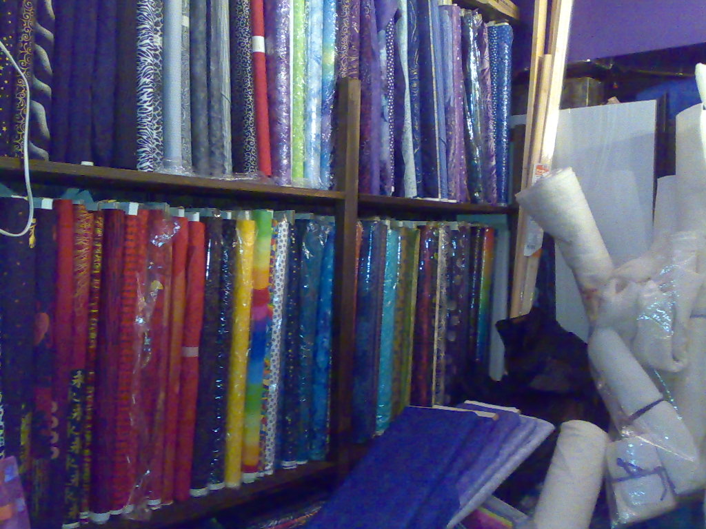 I was fairly sure I wanted this one to be purple but that is a tricky colour to get hold of. I did have a look both in my stash and at the shop but I couldn’t get the range of shades I needed. Today I had another look at my stash. As you can see there is quite a lot in there, although not as tidy as I would like, but not a massive run of purple especially not in large pieces. However as I was playing with them I realised the longer run is the slightly blue purples which means I can run into my second choice colour, blue. So the darkest parts will be very dark blues which I think will work really well. the darkest areas are the hair in this quilt so her hair will be blue with purple highlights, cool.