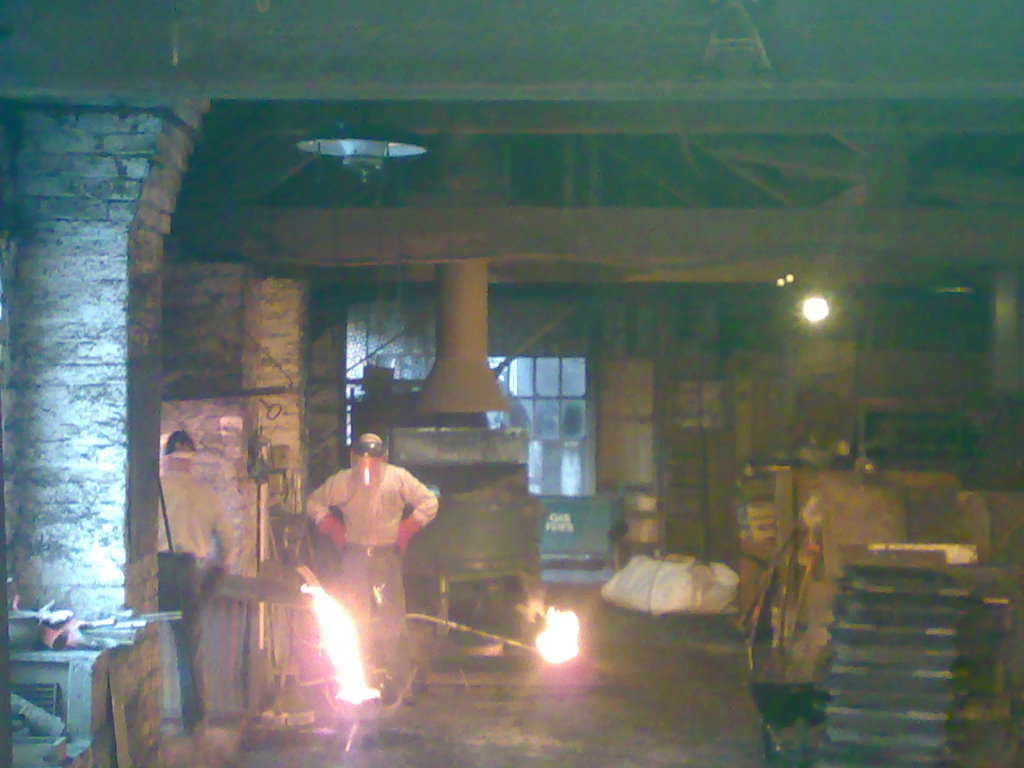 I only had a couple of hours in the area so I knew I wasn’t going to be able to see all the attractions in the gorge (I think there are 10 museums in the area) but I was determined to make it the Blists Hill Victorian town. Fortunately it was open as Thursday it was closed to have the roads resurfaced. For once a close call that was just in my favour. It did mean that the town was full of workmen and some areas were quite hard to access. When I bought my ticket I was told the foundry would be casting at 11, which gave me the framework for my visit. Please excuse the quality of the pictures. They are taken at low resolution on my mobile phone through a window into a dark room with bright spots. Not exactly ideal conditions.