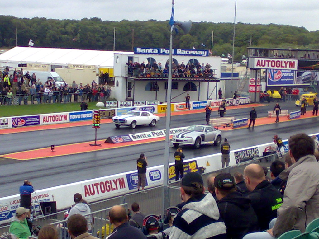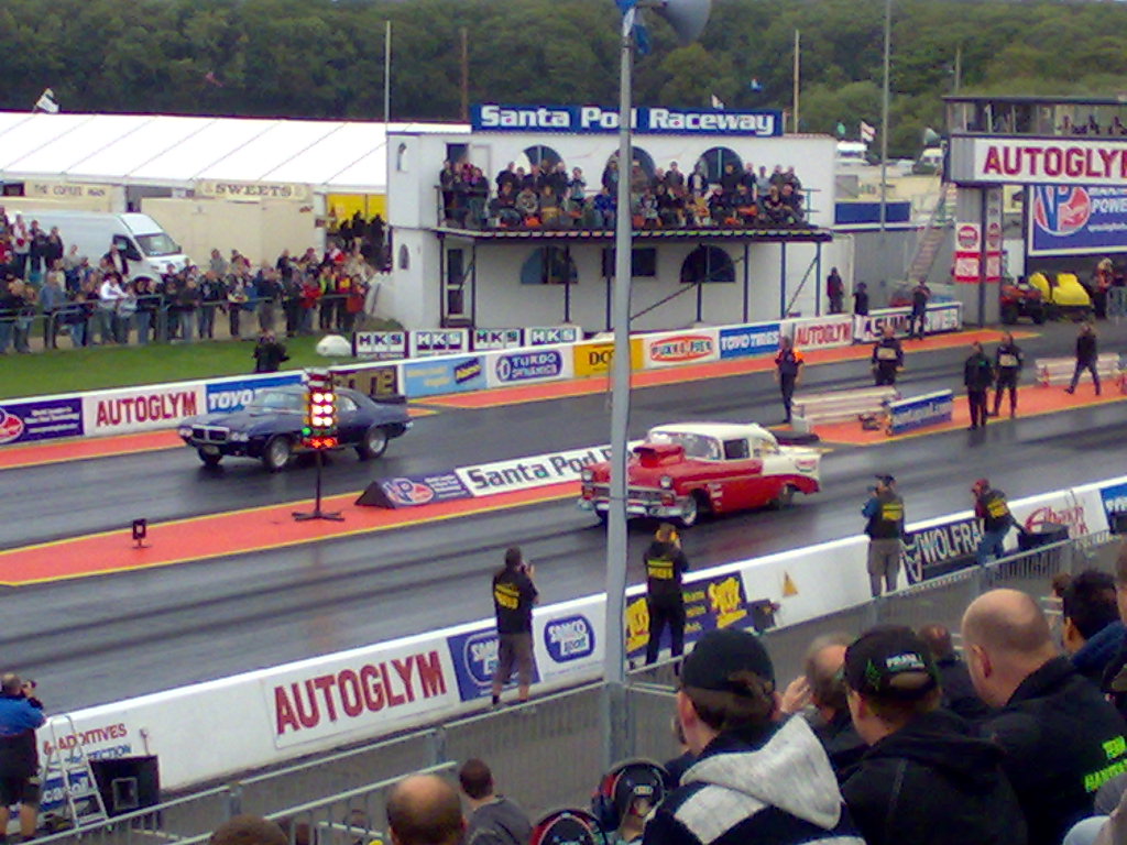 Either things have gone wrong or you are at Santa Pod for the drag racing.in my case the latter. The rain is much easier to deal with when you can have a lie in, a calm breakfast and do some design work while you wait for the track to dry. As you can see there was some racing today, although not much and it was well spread out with light erain on and off all day.